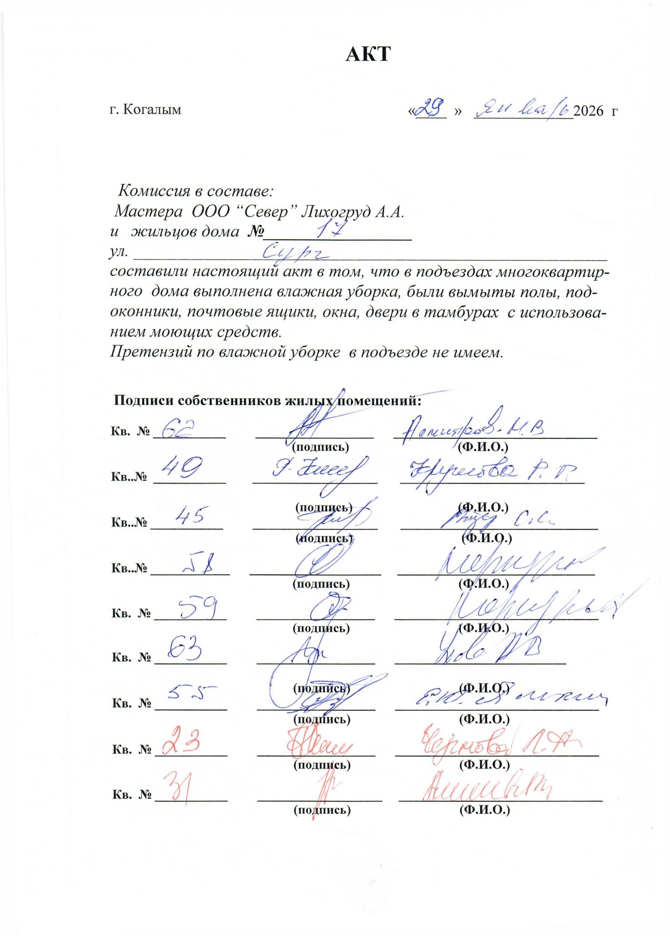 Сургутское шоссе 17. Акт выполнения влажной уборки подъезда. Январь 2026.jpg