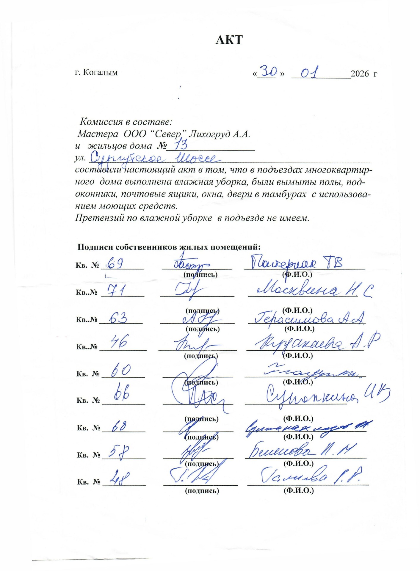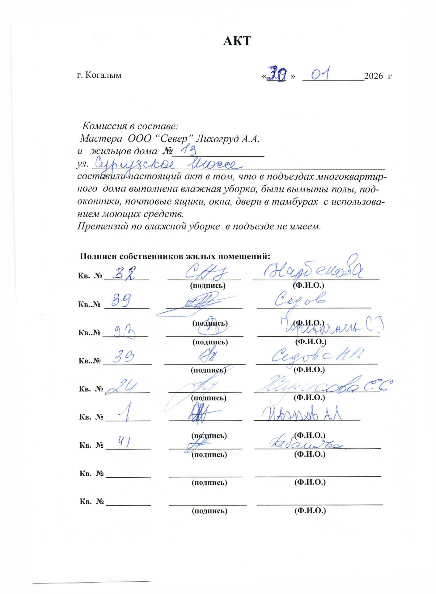 Сургутское шоссе 13. Акт выполнения влажной уборки подъезда. Январь 2026.jpg