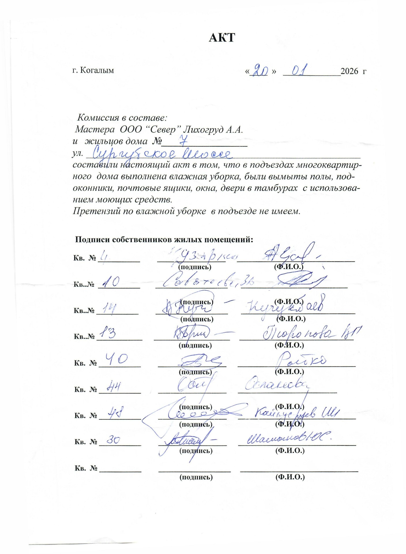 Сургутское шоссе 7. Акт выполнения влажной уборки подъезда. Январь 2026.jpg