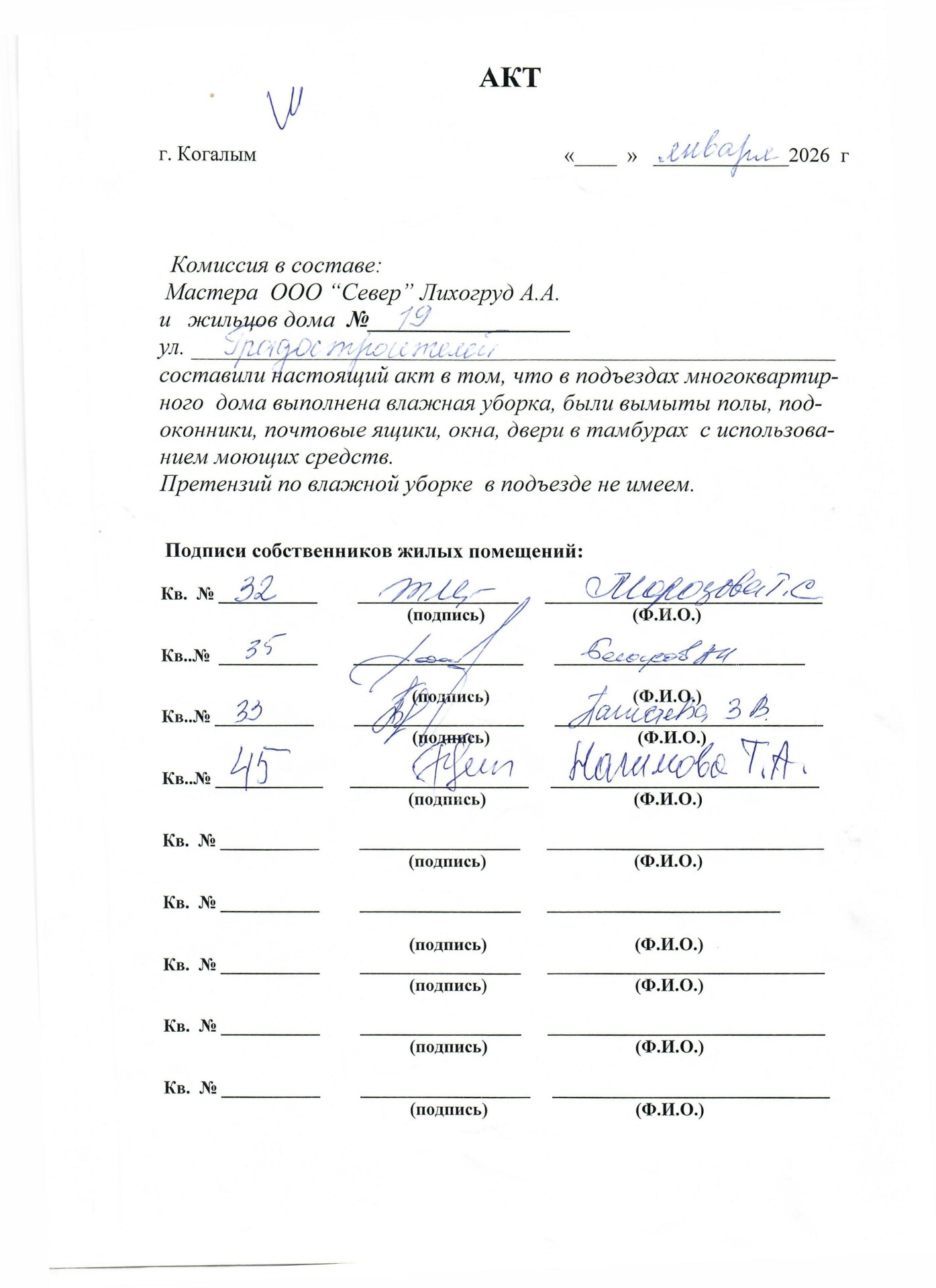 Градостроителей 19. Акт выполнения влажной уборки подъезда. Январь 2026.jpg