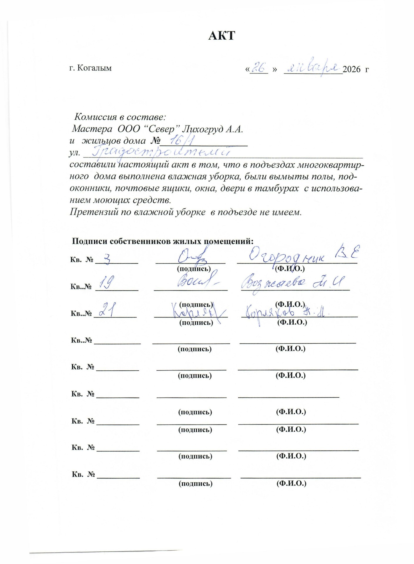 Градостроителей 16-1. Акт выполнения влажной уборки подъезда. Январь 2026.jpg